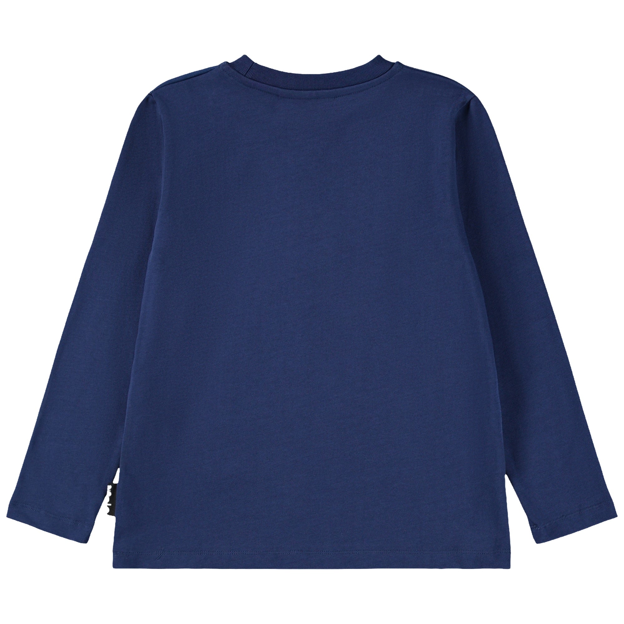 This Molo long-sleeve top features a vibrant blue sports car with gull-wing doors open, parked under a brilliant, galaxy-inspired night sky.