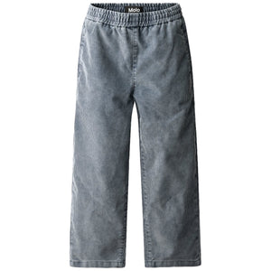 This Molo blue velvet pants with elastic waist, internal drawstring, side pockets and back pockets. The pants have a loose fit.