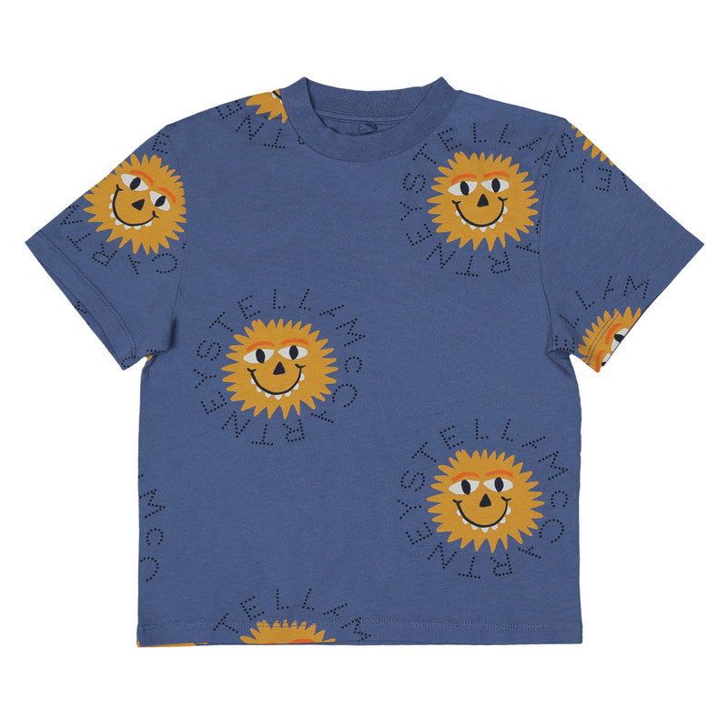 Blue Sun Print Cotton T-Shirt