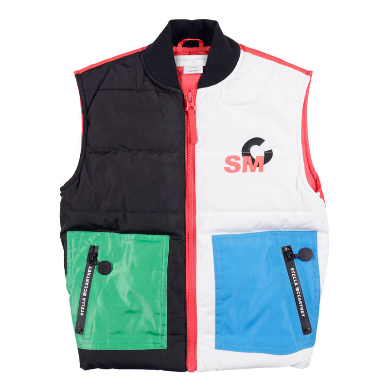 Multicolor SMC logo gilet for boys by Stella McCartney with Zip pockets, Stella McCartney logo, medallion.