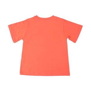 Bright orange-red T-shirt for boys, by Stella McCartney Kids. Made in soft organic cotton jersey, it has a bold 'Fry Dry' slogan print on the front, with quirky cartoon fries.