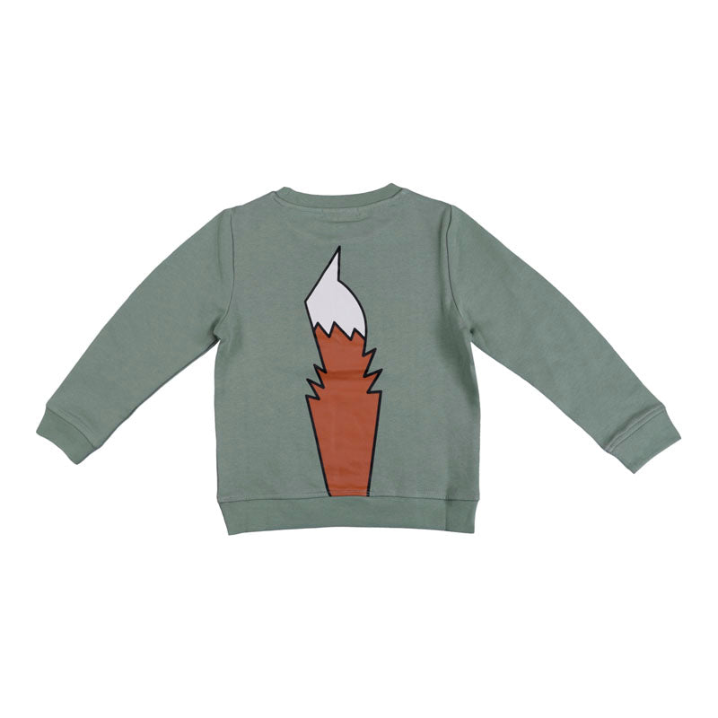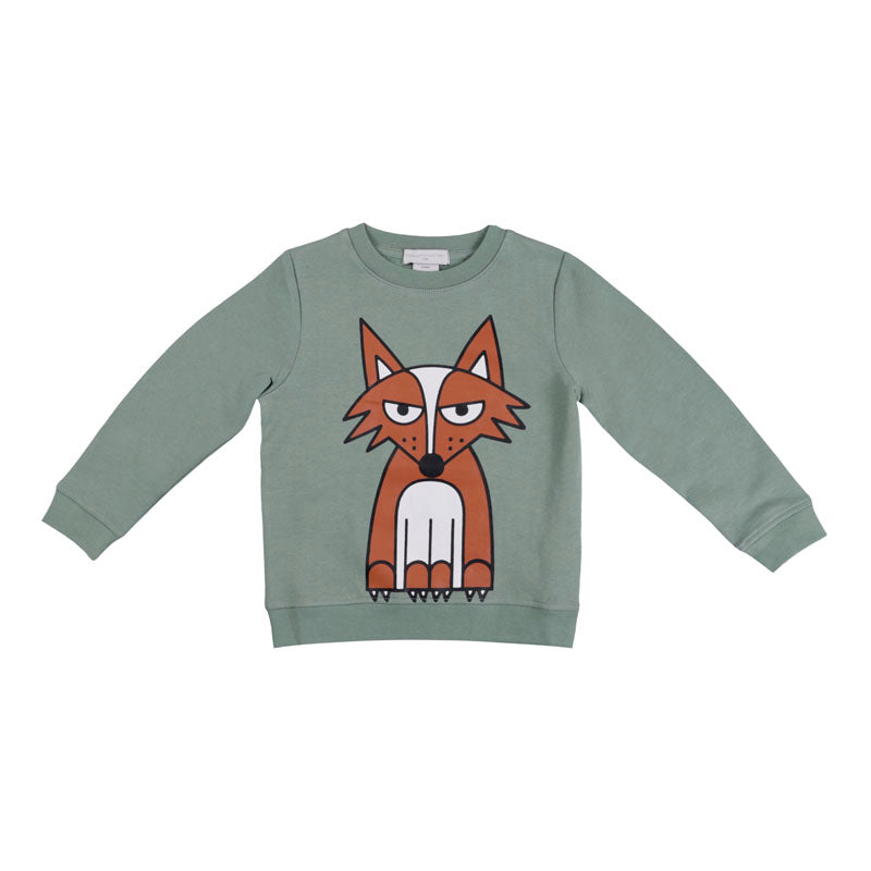 Boys green sweatshirt by British brand, Stella McCartney Kids. Made in comfortable organic cotton sweatshirt jersey with a soft brushed feel inside, it is printed on the front and back with a fun brown fox design.