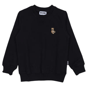Moschino Boys Black Bear Sweatshirt Crafted In Cotton, Featuring Crew Neck, Long Sleeves, Ribbed Cuffs And Pull Over.