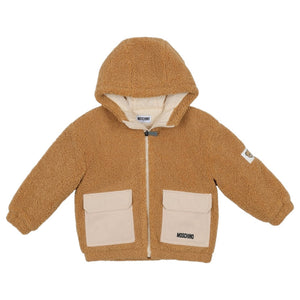 Stay Cozy And Stylish With This Moschino Hooded Jacket. Made From A Soft, Teddy Bear-Like Fleece, This Jacket Features A Full-Zip Front, A High Neck, And A Quilted Lining. It Includes Two Contrasting Front Pockets, One With The Moschino Logo, And Is Finished With A Signature Teddy Bear Patch On The Sleeve.