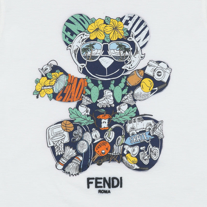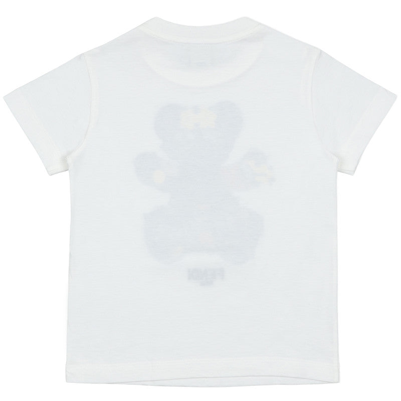 Junior T-shirt in white jersey with multicolor Fendi bear print on the front.