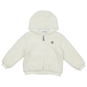 This Cozy And Adorable Cream-Colored Sherpa Hoodie From Moschino Is A Perfect Layering Piece For Your Little One. Made From Soft, Plush Sherpa Material, It Features A Comfortable Hood, A Full-Zip Front, And A Cute Moschino Teddy Bear Patch On The Chest. The Ribbed Cuffs And Hem Ensure A Snug Fit, While The Two Front Pockets Add A Practical Touch. It’S A Warm And Playful Choice For Cooler Days.