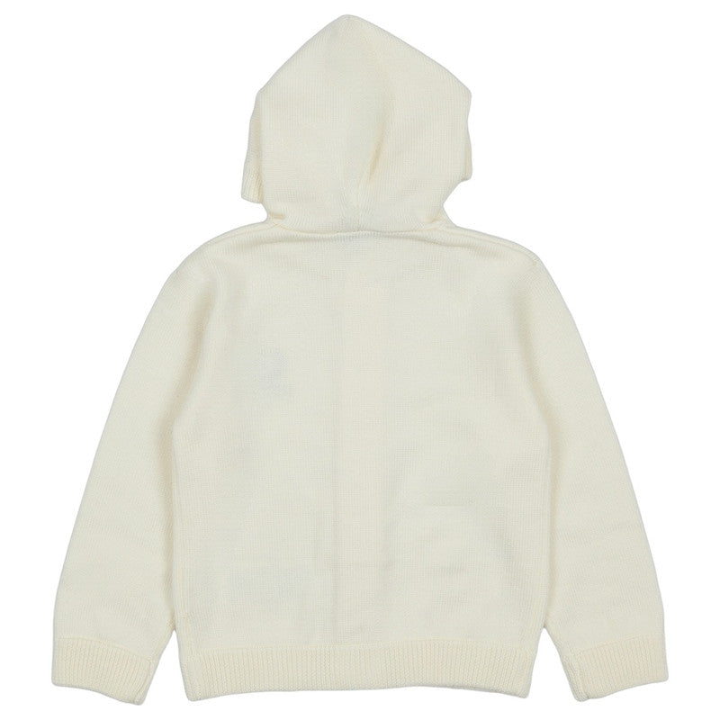 This Cozy Moschino Knitted Cardigan In Cream Features A Snug Hood And The Brand'S Embroidered Teddy Bear Logo. It'S A Sweet And Warm Layering Piece For Babies.