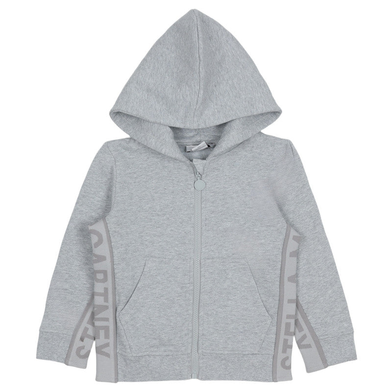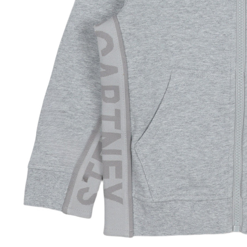 A comfortable grey marl zip-up hoodie featuring the Stella McCartney logo tape detail running down both of the side seams