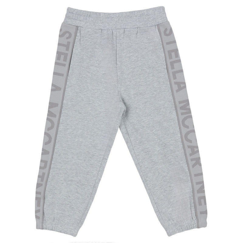 Comfortable grey marl sweatpants featuring the Stella McCartney logo tape detail running vertically down the outer side seam of each leg.