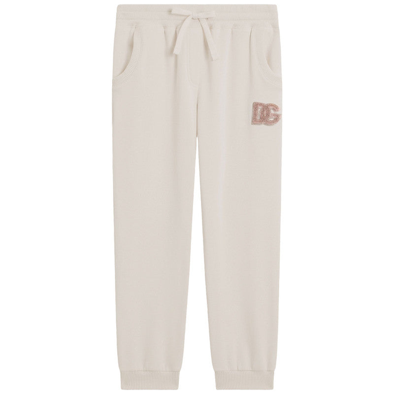 Dolce & Gabbana Beige Fleece Trousers With D&G Sequin Patch