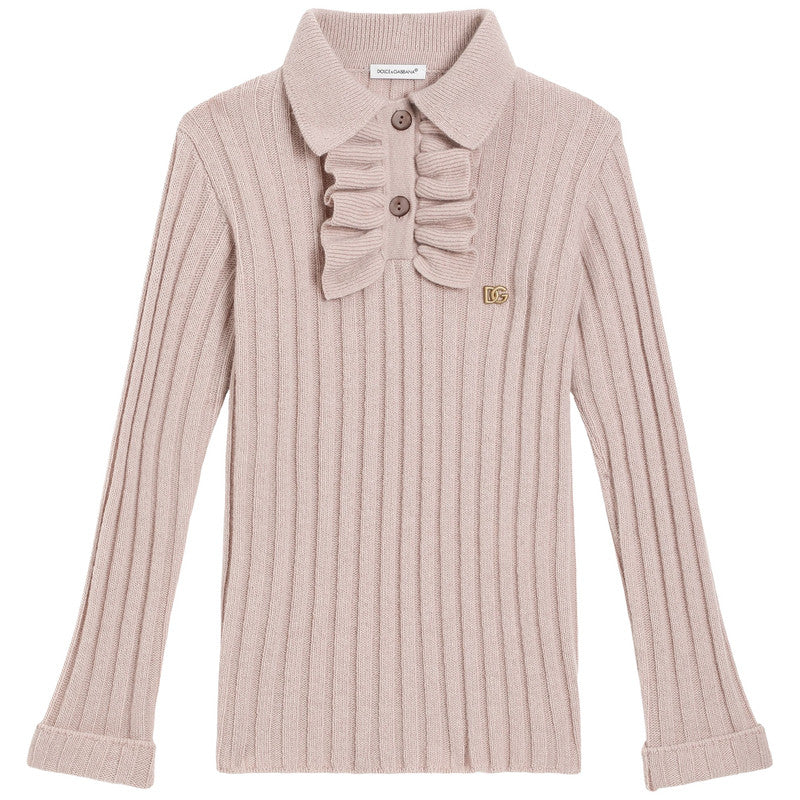 Dolce & Gabbana Peach Ribbed Wool Polo Dress With Ruffles