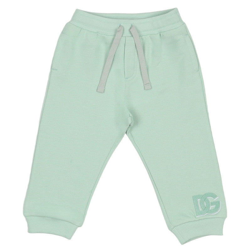 Luxuriously soft Dolce & Gabbana joggers in a fresh mint hue. Featuring an elastic waist, drawstring, and signature DG logo embroidery. Perfect for stylish comfort.
