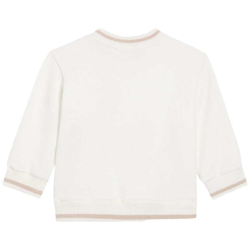This ivory cotton sweatshirt by Dolce & Gabbana has a super cute leopard appliqué on the front with 3D ears and the brand's DG logo below. Made in soft, comfortable jersey, it has striped ribbed trims for extra cosiness and useful poppers on one shoulder for easy dressing.