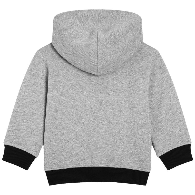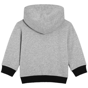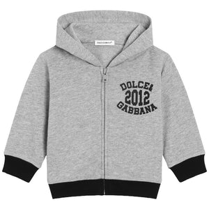 Combining comfort and style, this grey marl zip-up top is by luxury Italian label Dolce & Gabbana. Made in soft cotton jersey, it has a cosy fixed hood and contrasting black ribbed trims. Adding instant designer appeal, a 2012 varsity-style rubberised logo is printed on the chest.