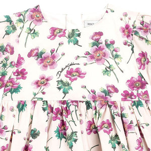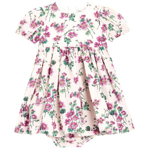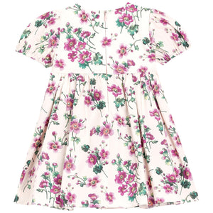 This Violets-print poplin dress, featuring refined details like an empire cut and gathered sleeves, is ideal for special occasions