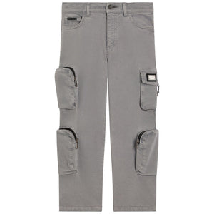 Dolce & Gabbana's grey cargo pants offer cool utility and designer flair. They feature multiple zippered pockets for storing essentials on every adventure.