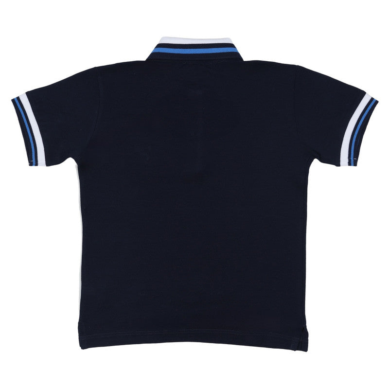 A classic navy Dolce & Gabbana polo shirt with striped collar and cuffs. Features an intricately embroidered DG crest logo for an elegant, timeless look.