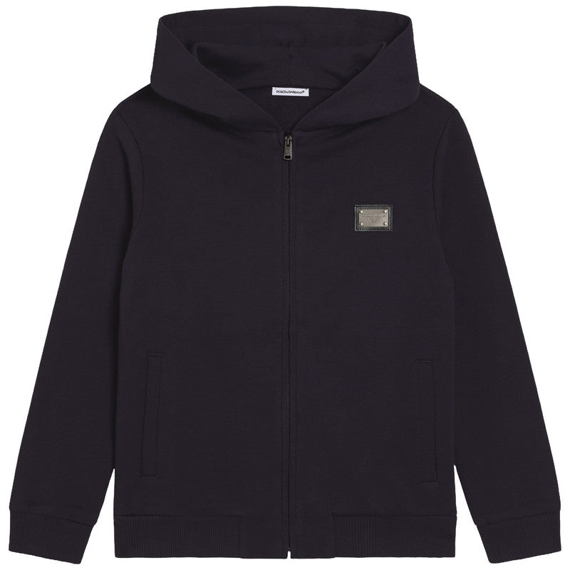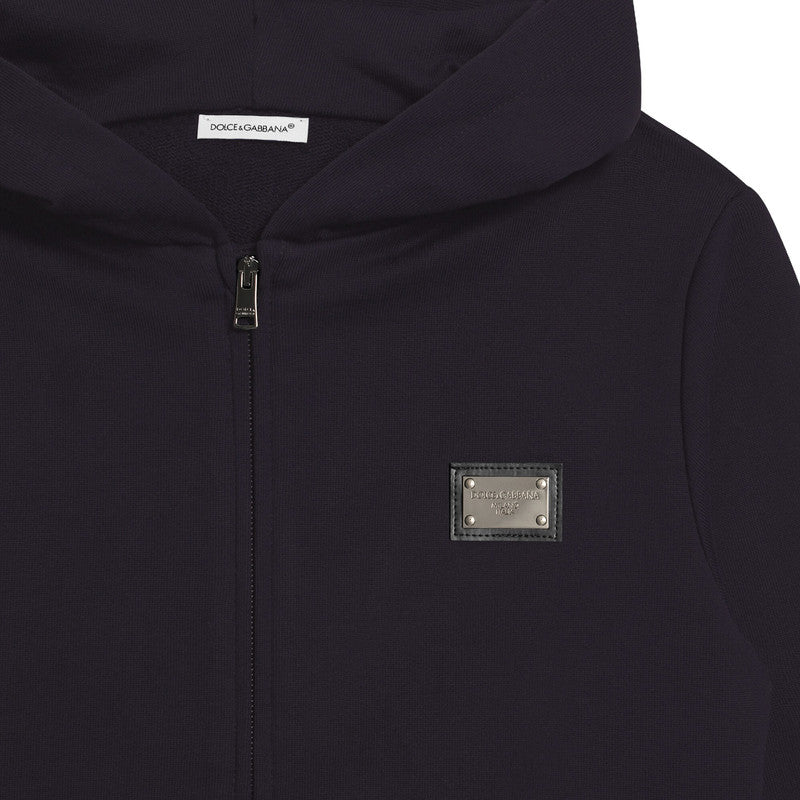 Dolce & Gabbana Navy Zipped Hoodie With Dg Logo Plaque