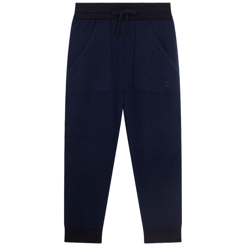 These navy blue joggers by Italian label Dolce & Gabbana, combine casual comfort with a touch of luxury. They are styled with slanted front pockets and a drawstring waist for an adjustable fit. The brand's iconic DG logo is embroidered on the front for a subtle designer touch.