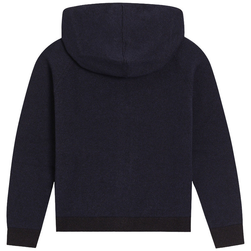 Combining casual style with luxurious comfort, this navy blue zip-up top is by Italian fashion house Dolce & Gabbana. Finely knitted, this hooded layering piece has a tonal DG logo embroidered on the chest, adding an elevated yet understated designer touch.