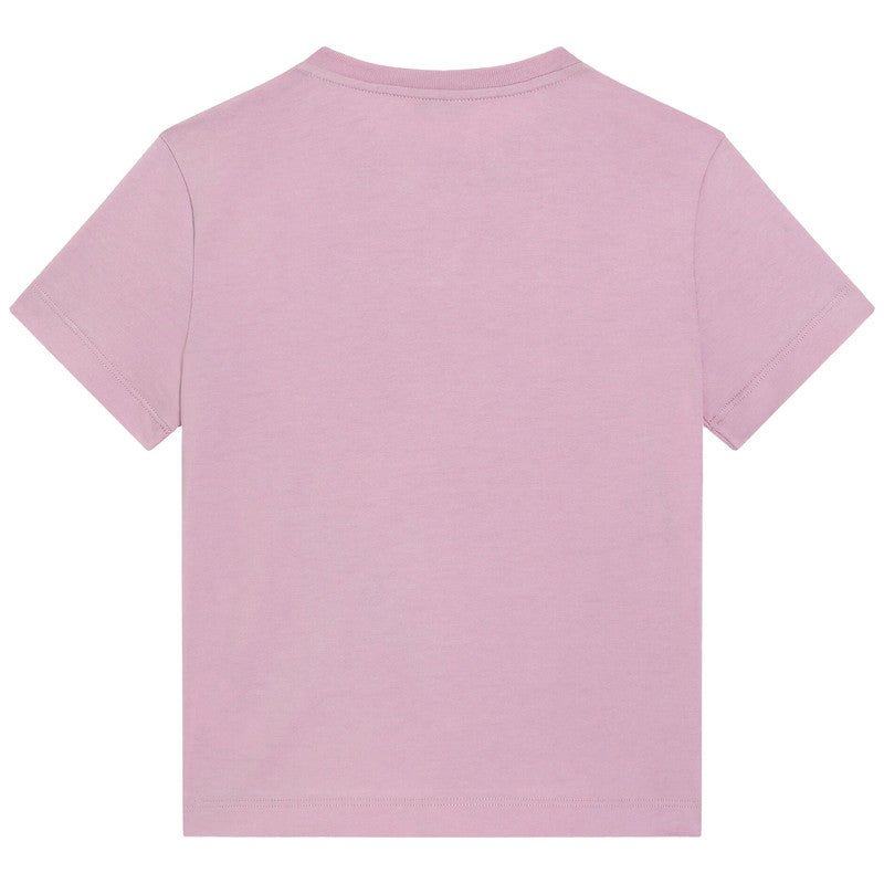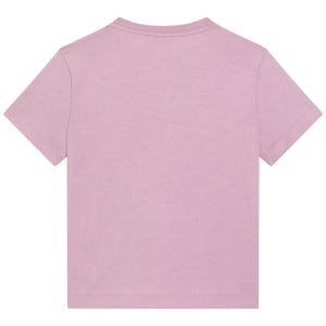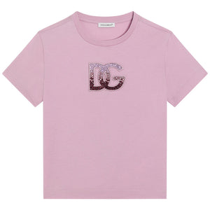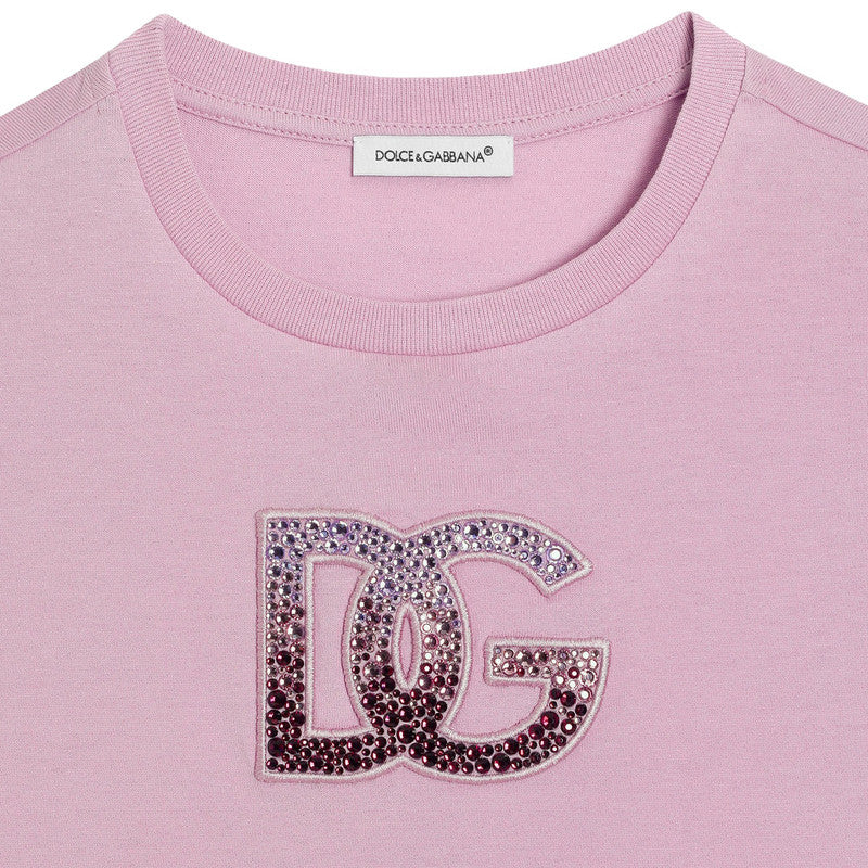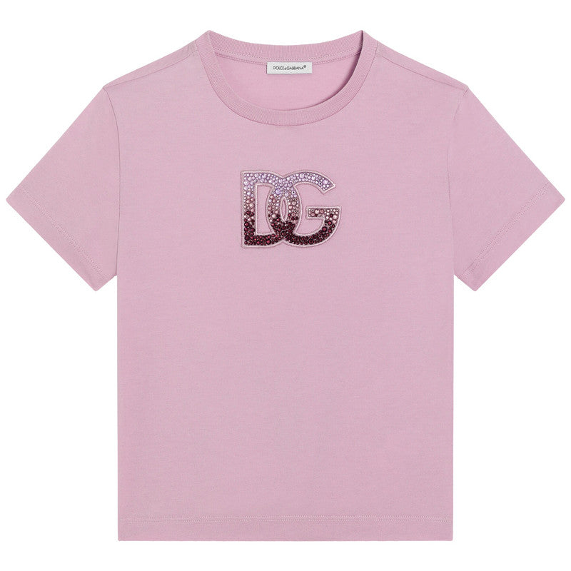 Simply beautiful, this lilac purple cotton T-shirt for girls is by Italian fashion house, Dolce & Gabbana. Adding a touch of luxury sparkle, this casual jersey top features a statement DG logo, embellished with dazzling, ombré-effect rhinestones.