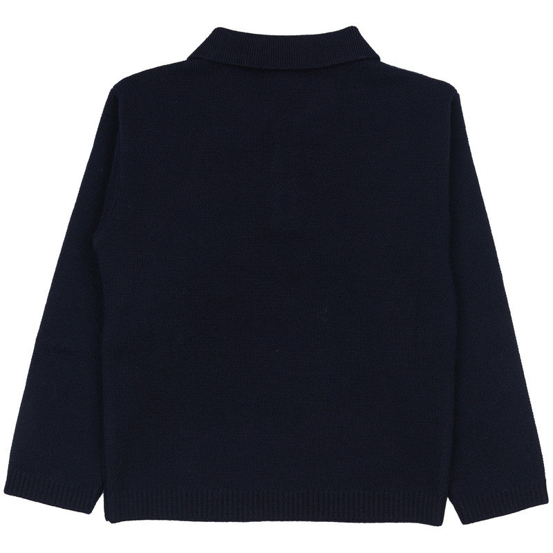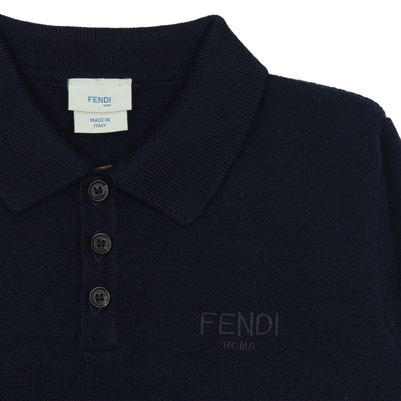 Crafted in Italy, this piece combines the structured silhouette of a classic polo with the warmth and softness of a premium knit for your kids. Its deep navy hue and subtle branding make it a versatile staple for formal events or upscale casual wear.