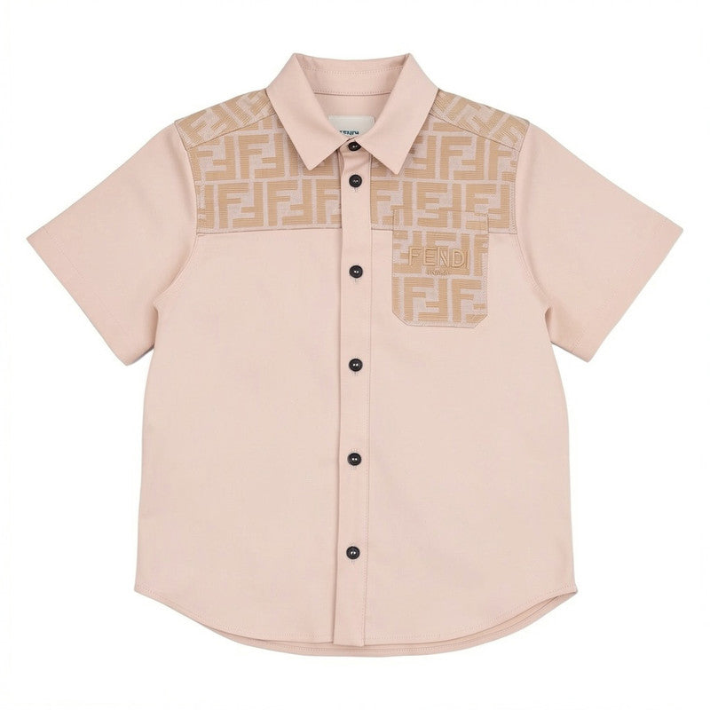 This Fendi Kids Shirt Features A Distinctive FF-Motif Pattern On The Shoulders And Pocket.