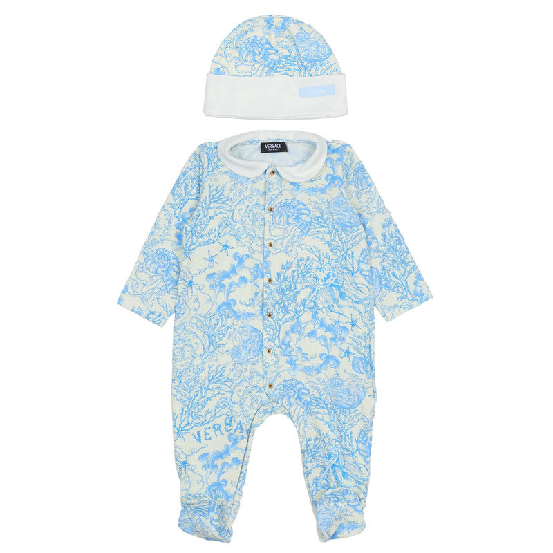 Versace Blue Underwater Barocco Baby Sleepsuit Set