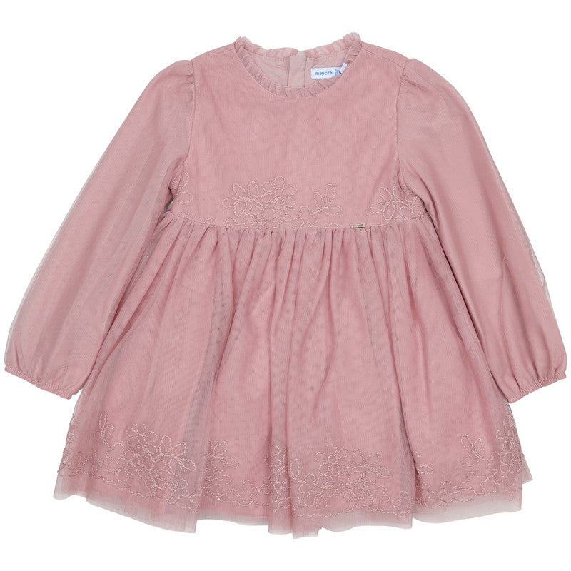 This elegant Mayoral Net Dress and Headband Set is a sophisticated choice for formal occasions and celebrations. Available in both timeless white and soft dusty pink, this ensemble features a delicate long-sleeved dress paired with a coordinating bow headband.