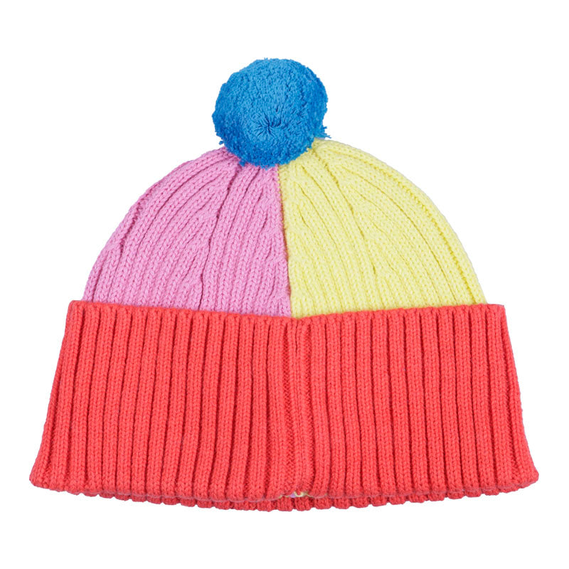Colour-block knit beanie from STELLA MCCARTNEY KIDS featuring multicolour, cotton blend, chunky ribbed knit, pompom detail and turn-up brim. Small Size would fit 2/4Y Kids.