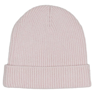 Ribbed knit beanie featuring an embroidered logo on the cuff, embodying a fusion of street style and refined aesthetics.
