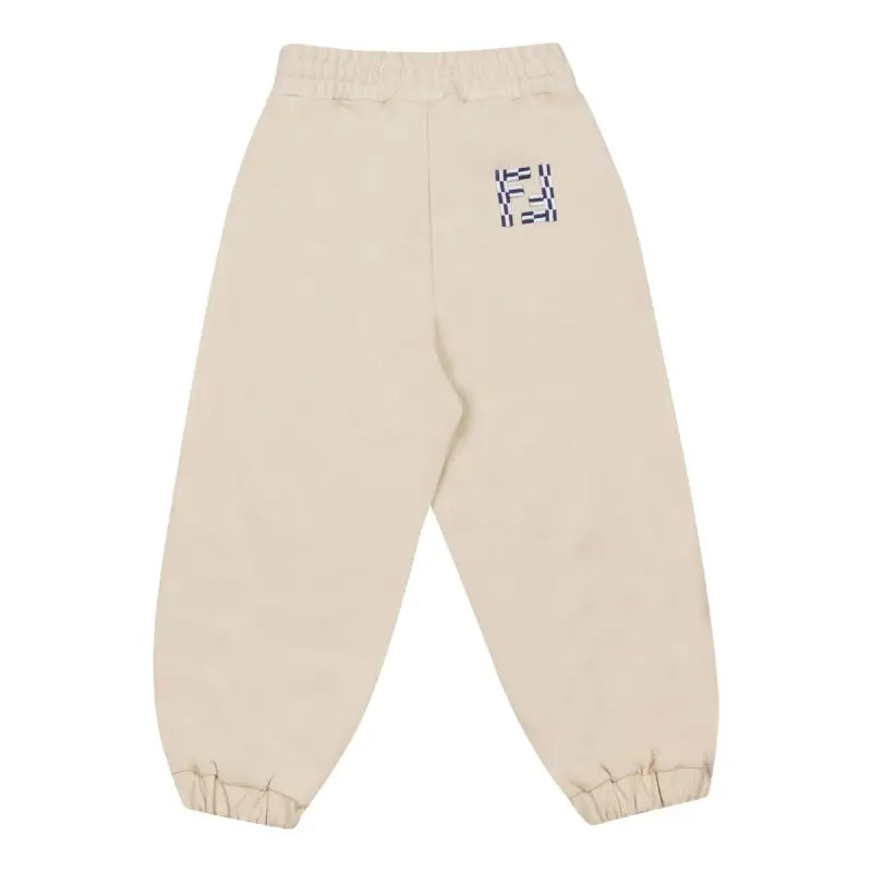 Fendi light beige cotton jersey texture FF motif logo patch to the rear tapered leg mid-rise elasticated waistband two diagonal pockets to the sides French terry lining elasticated ankles