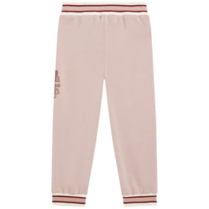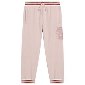 Pink joggers for girls by luxury label Dolce & Gabbana, with a striking crest logo motif adding a distinctive designer touch. Both stylish and comfortable, they are made in soft cotton jersey, with striped ribbed trims.