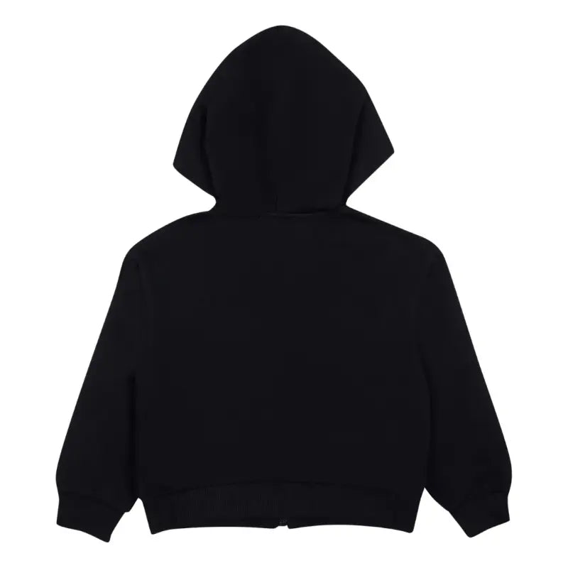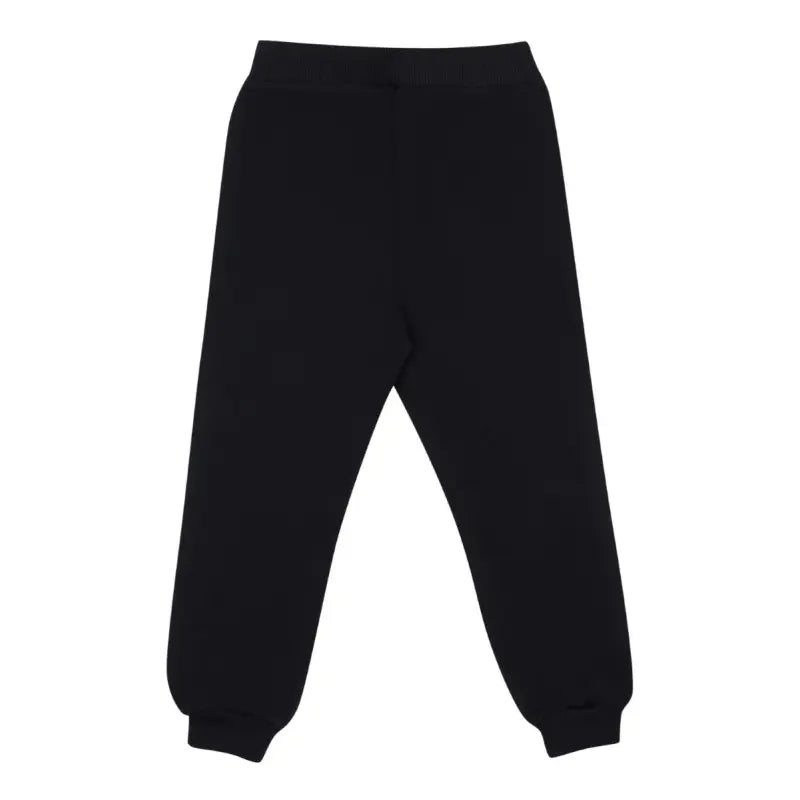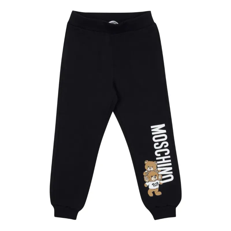 Black tracksuit by Moschino Kid-Teen, made in soft and mid-weight cotton jersey. For instant designer appeal, both pieces are printed with a bold white logo and the Italian designer's Teddy Bears. Ideal for layering over T-shirts, the zip-up hoodie has useful side seam pockets and ribbed trims. The matching cuffed joggers have concealed pockets and a comfortable, stretchy waistband.