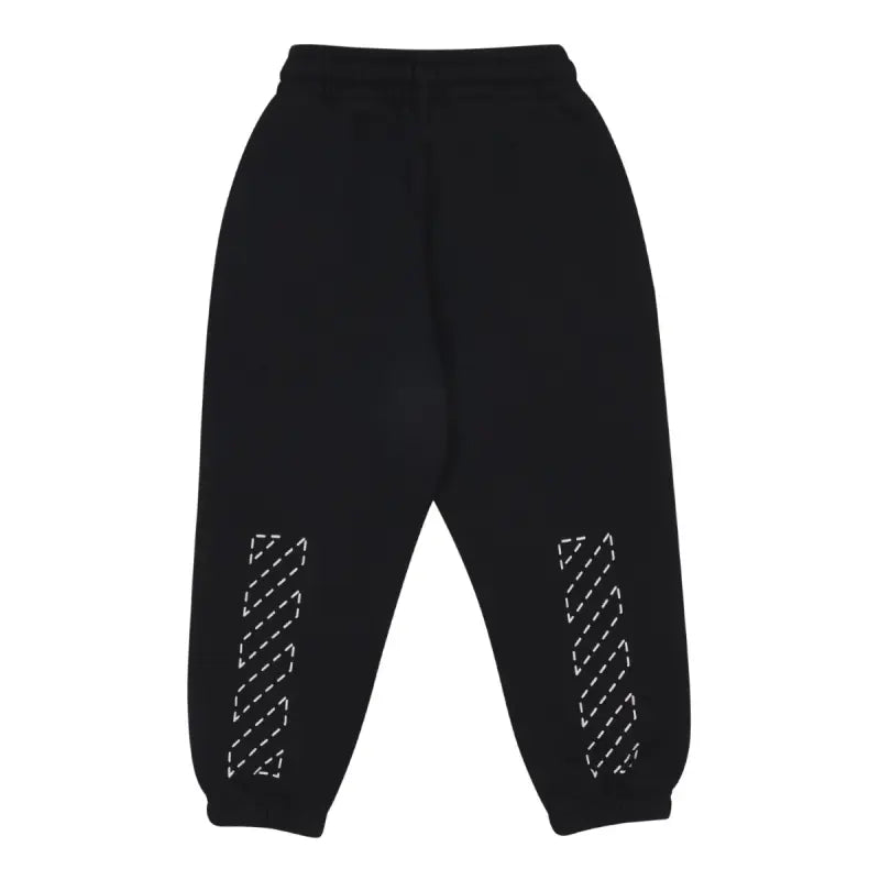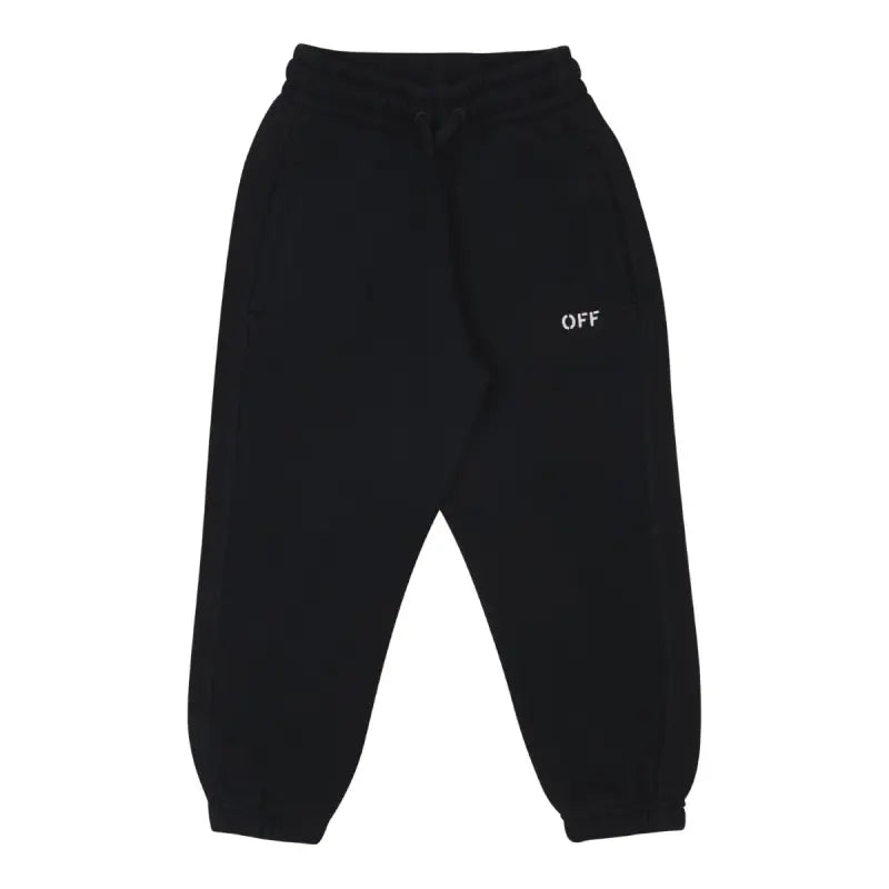 Black bookish sweatpants featuring white Off-White logo at front. Tonal laces. Two sides pockets. Elasticized waist band and ankle cuffs.