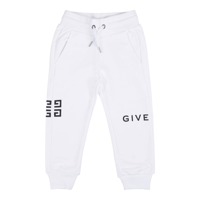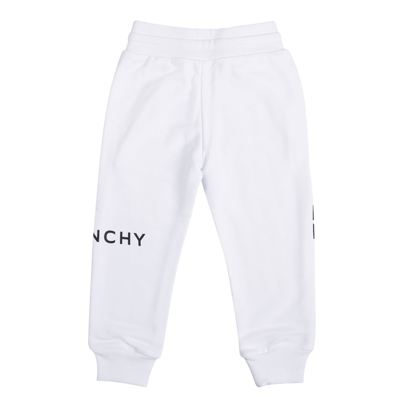 White Logo Print Track Pant for boys & Girls by Givenchy kids with two side slit pockets. Fabric: 86% Cotton 14% Polyester