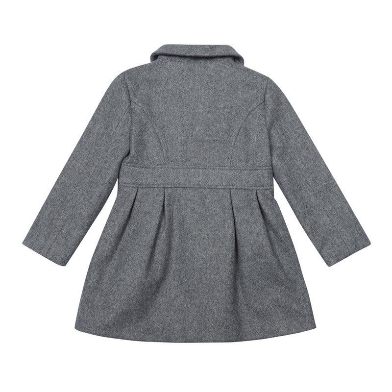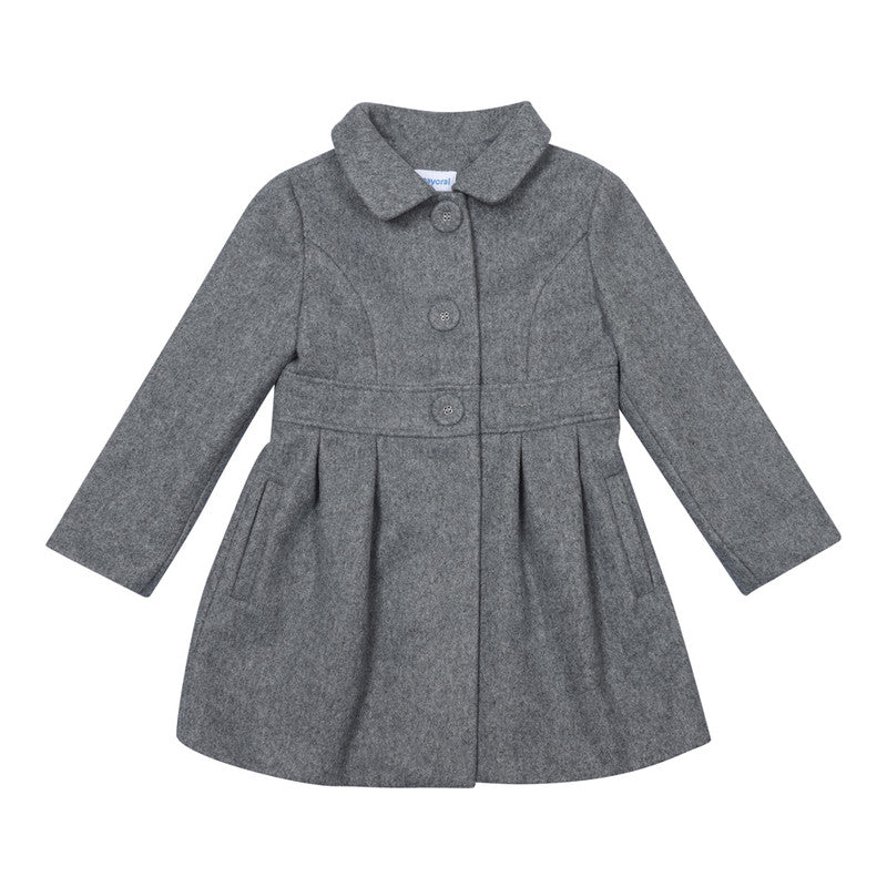 Coat for girl. Shirt collar. Button fastenings down the front. Side pockets.