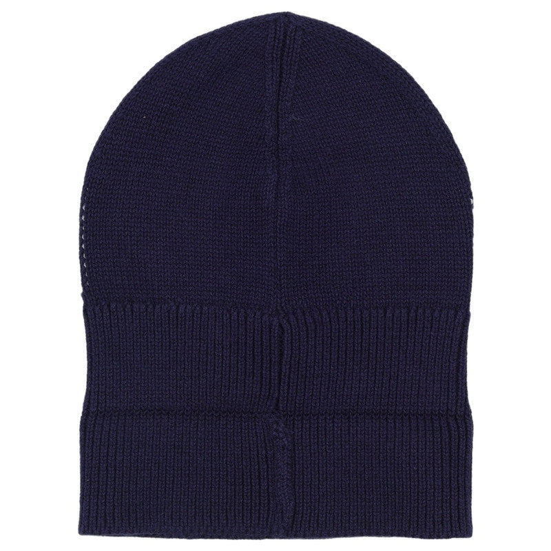 Keep Your Little One'S Head Warm And Stylish With This Navy Blue Moschino Knit Beanie. Made From Soft, Comfortable Material, This Hat Features The Moschino Logo Boldly Knitted In Contrasting White Across The Front. The Ribbed Cuff Ensures A Secure And Cozy Fit, Making It A Perfect Accessory For Colder Days.