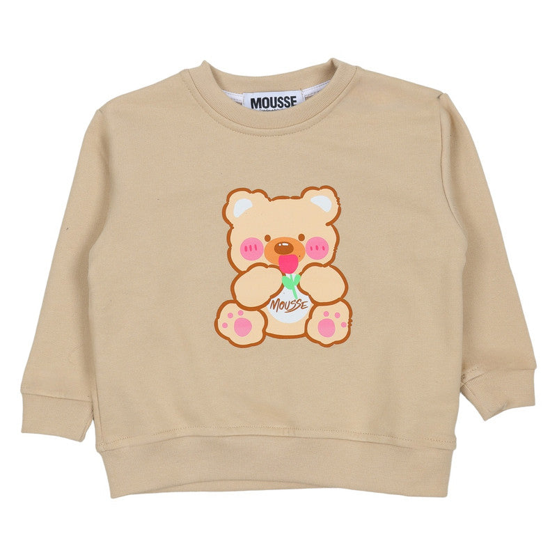 Wrap your little one in comfort and charm with the Mousse Beige Bear Sweatshirt! Featuring an adorable, pastel bear graphic, it's perfect for cozy everyday play.
