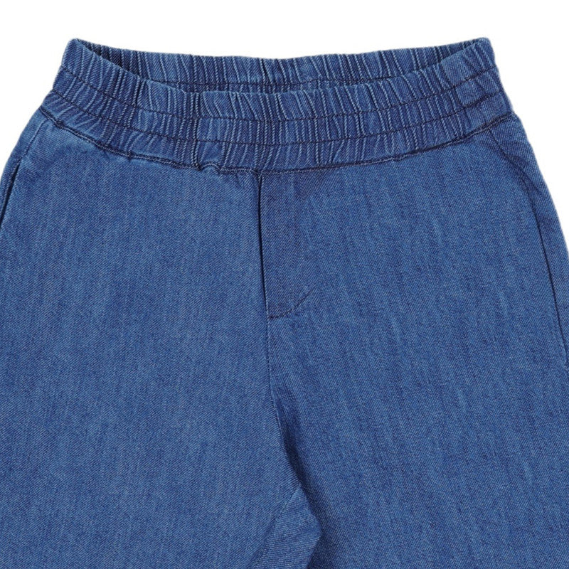 Stylish blue denim trousers featuring a comfortable elastic waist and statement cuffs with the classic Fendi FF monogram print.