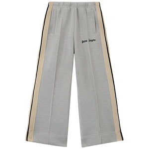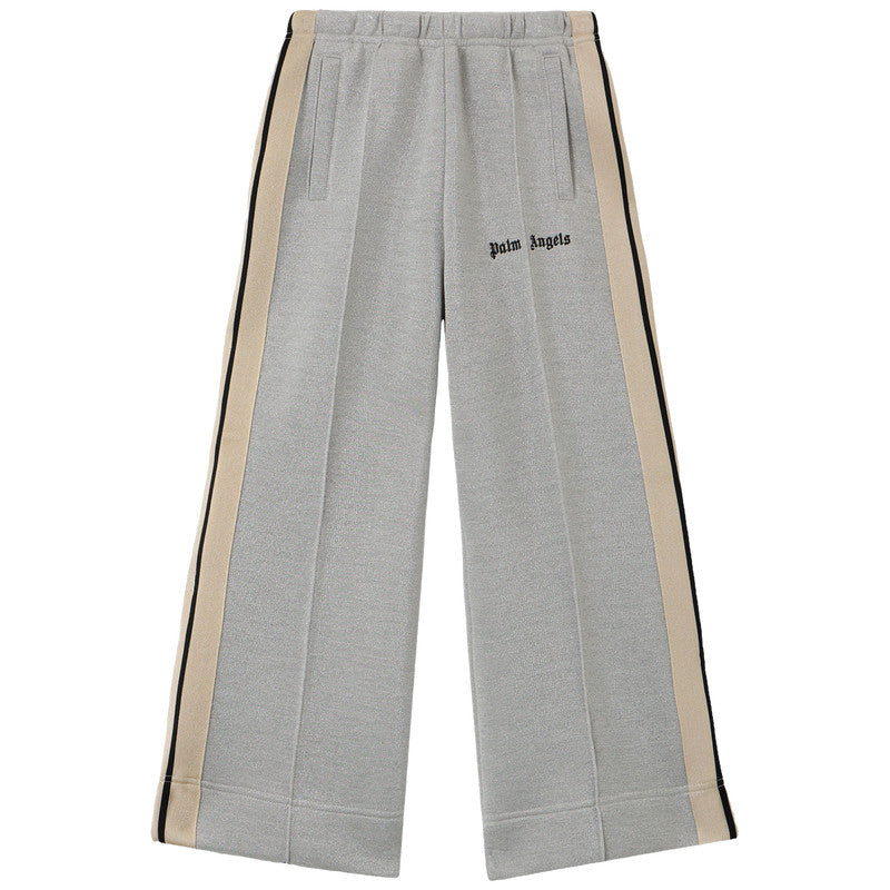 Introduce a modern silhouette with the Palm Angels Wide-Leg Track Pants. These comfortable grey melange trousers feature the iconic side stripes in black and beige, blending sporty style with a fashion-forward, relaxed fit.
