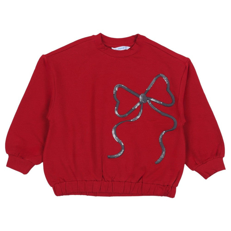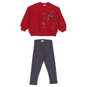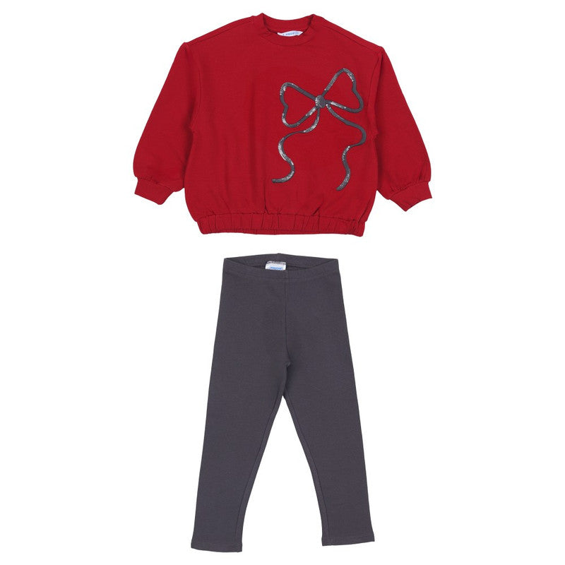 Mayoral Red Sweatshirt Crop With Black Legging Bow Print