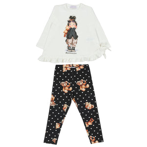 Monnalisa Ivory & Black Teddy Print Leggings Set