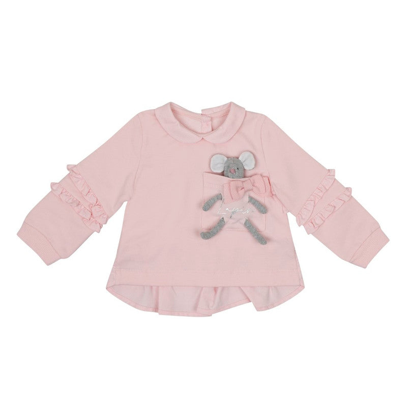 Sweatshirt blouse with impressive detachable Lapin print mouse on the front of the garment