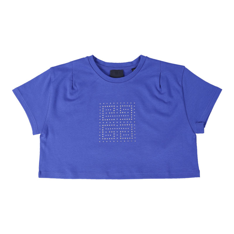 Short-sleeve T-shirt from Givenchy Kids featuring blue, cotton, crystal embellishment, appliqué logo, crew neck, short sleeves and straight hem.