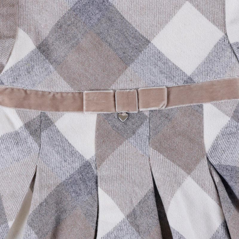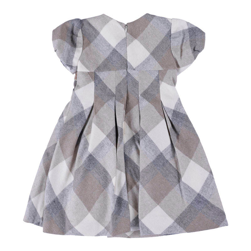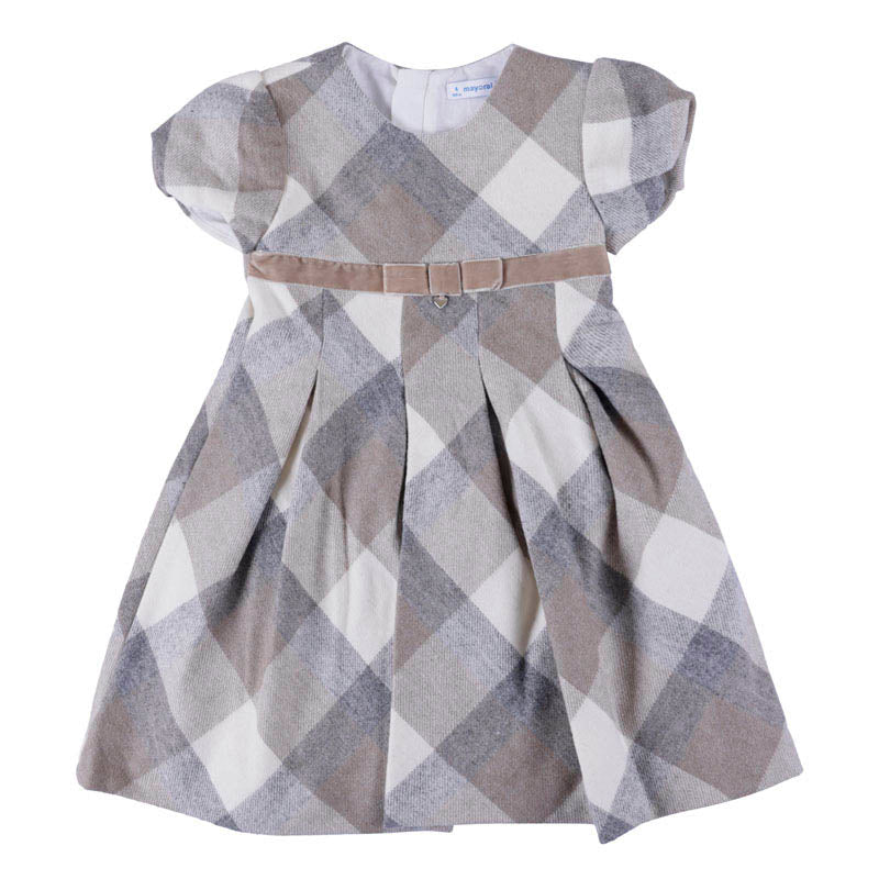 Short sleeved cress for girl. Round neckline. Opening on the back with an invisible zip. Checked pattern. 50%ACRYLIC 25%POLYE 20%WOOL 5%OTH FABRIC