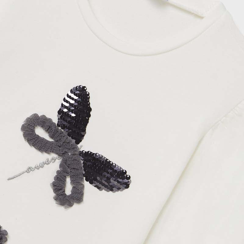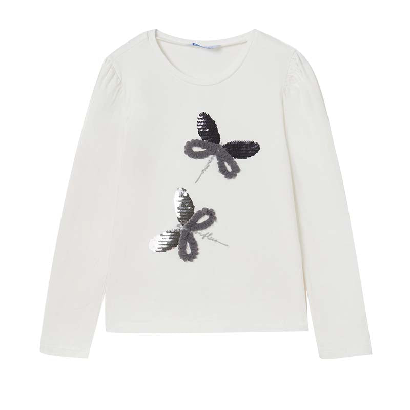 Long sleeved T-shirt for girl. Decorative elements: sequins. 95% Cotton 5% Elastane