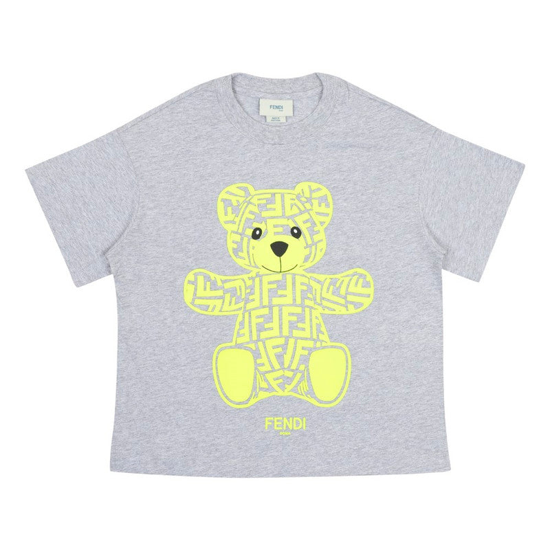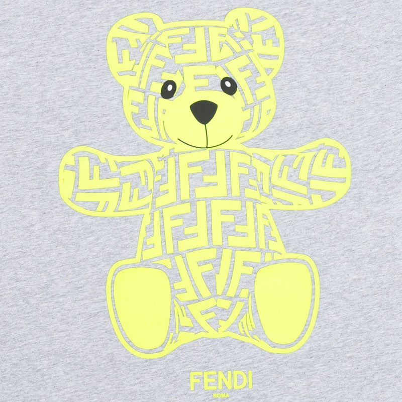 Fendi Grey & Neon Yellow FF Teddy Bear T-Shirt