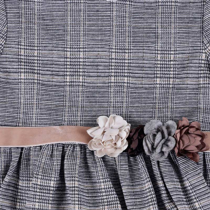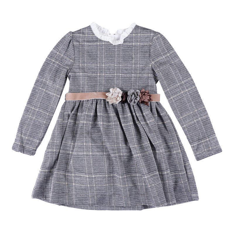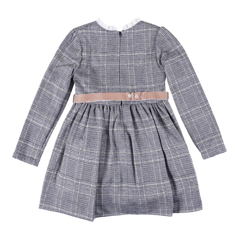 Original two-piece set for girl. Long sleeved cress for girl. Round neckline with ruffles. Opening on the back with an invisible zip. Detachable belt. 79%POLYE 10%METAL FIBER 8%VIS 2%CO 1%EL