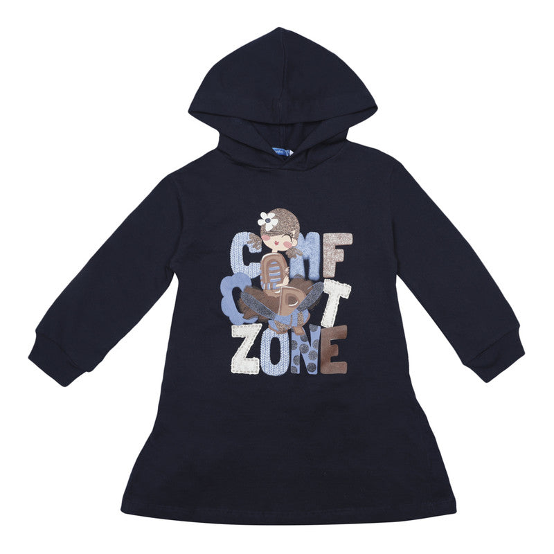 Long sleeved Dress for girl. Collar with hood. 100% cotton. Decorative elements: design on the front, glitter. By choosing our cotton products you are supporting our investment in the Better Cotton initiative. Better Cotton is sourced via a chain of custody model called mass balance. This means that Better Cotton is not physically traceable to end products, however, Better Cotton Farmers benefit from the demand for Better Cotton in equivalent volumes to those we source.